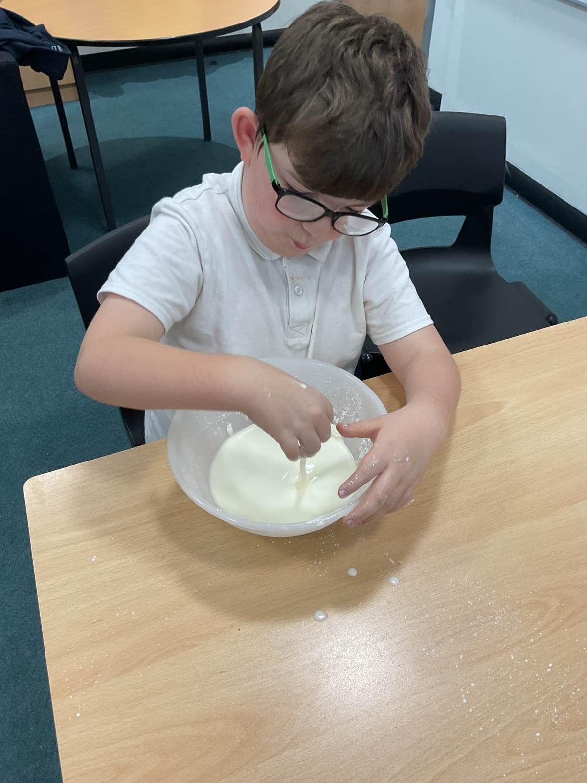 In Science, students have made nonnewtonian liquid using water and cornflour.