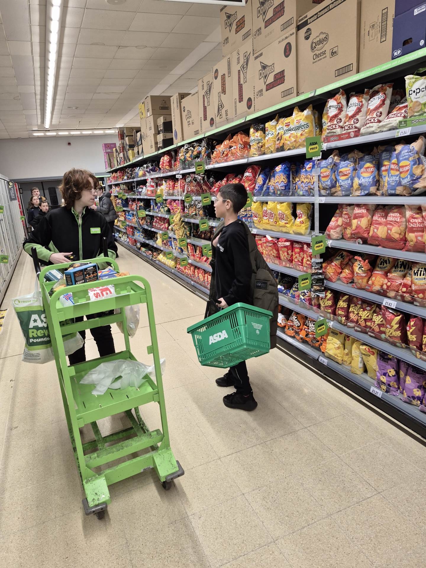 We then went on a visit to Asda to show off our supermarket knowledge. We started off with a hunt around the store looking for different colours and writing down the matching item. Then we started to investigate prices around the store, comparing differences between branded and own-brand products. This helped us get to the layout of the supermarket because then we completed the shopping lists we gathered from other classes. The pupils were amazing in finding the items, some even asked the staff where they could find items that they were struggling to find. Once our shopping lists were finished, we headed to pay where the class worked in pairs in scanning and packing. When we arrived back at school, we sorted the shopping into the class groups and delivered it to the right classes!