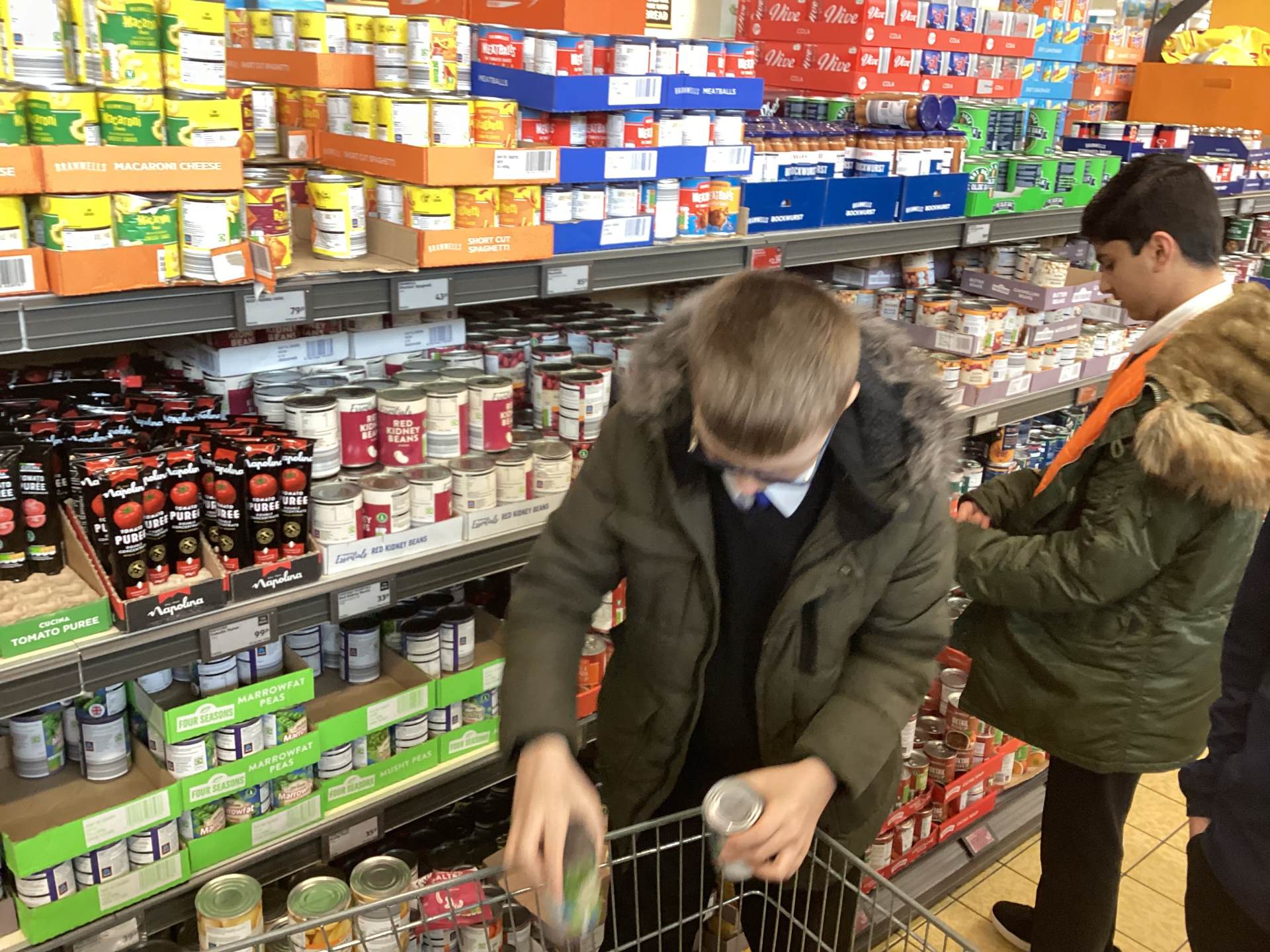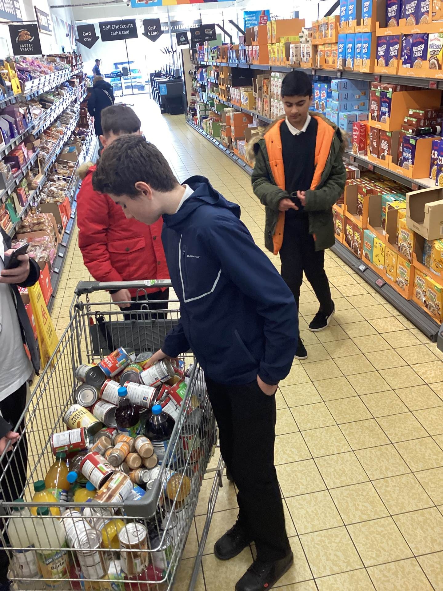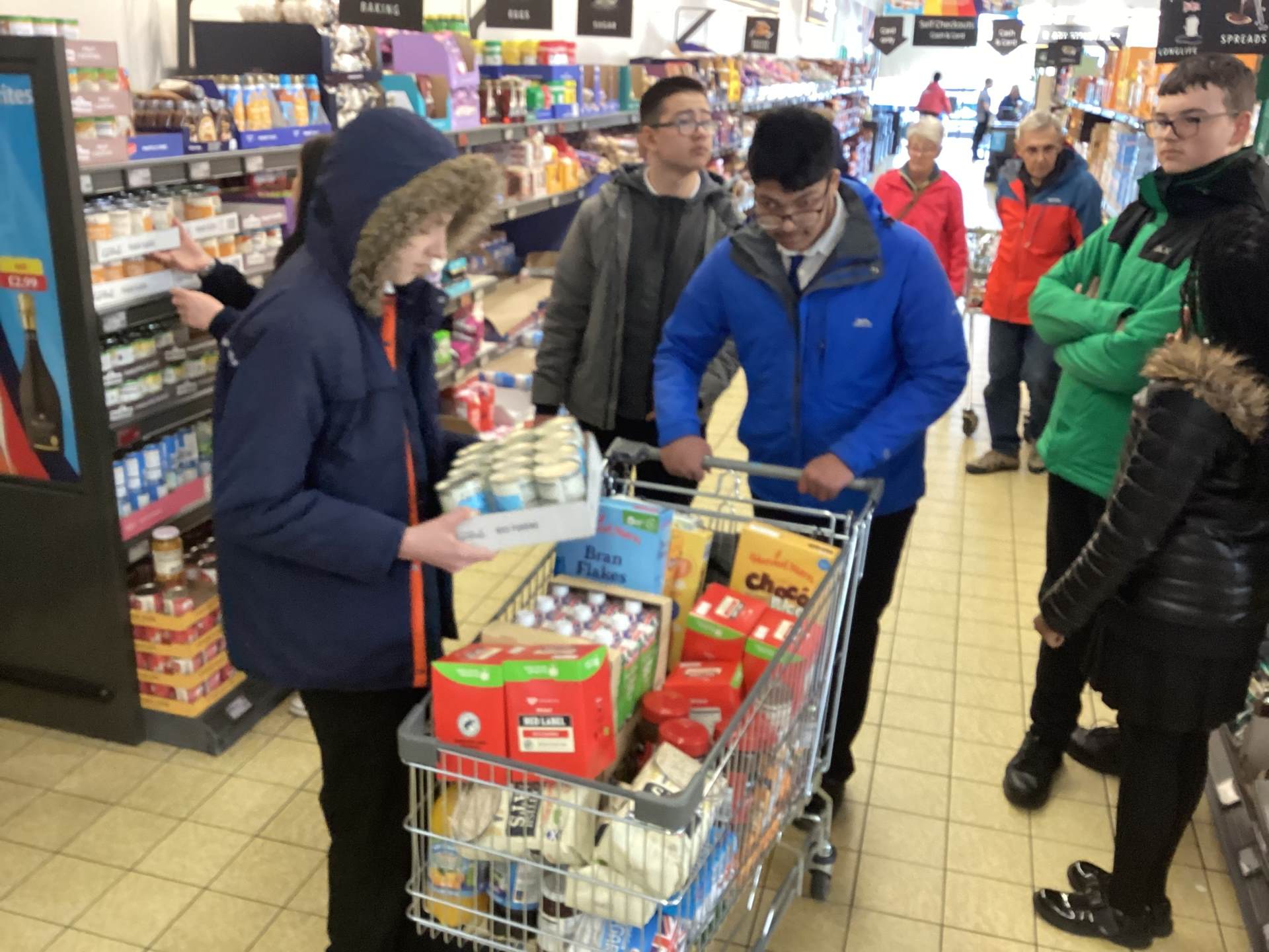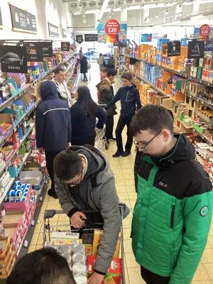 Yesterday, as a result of the amazing fundraising work 9A did before the Easter holidays, we visited 2 supermarkets – Aldi and Costco – buying food items to donate to Tameside East Foodbank.