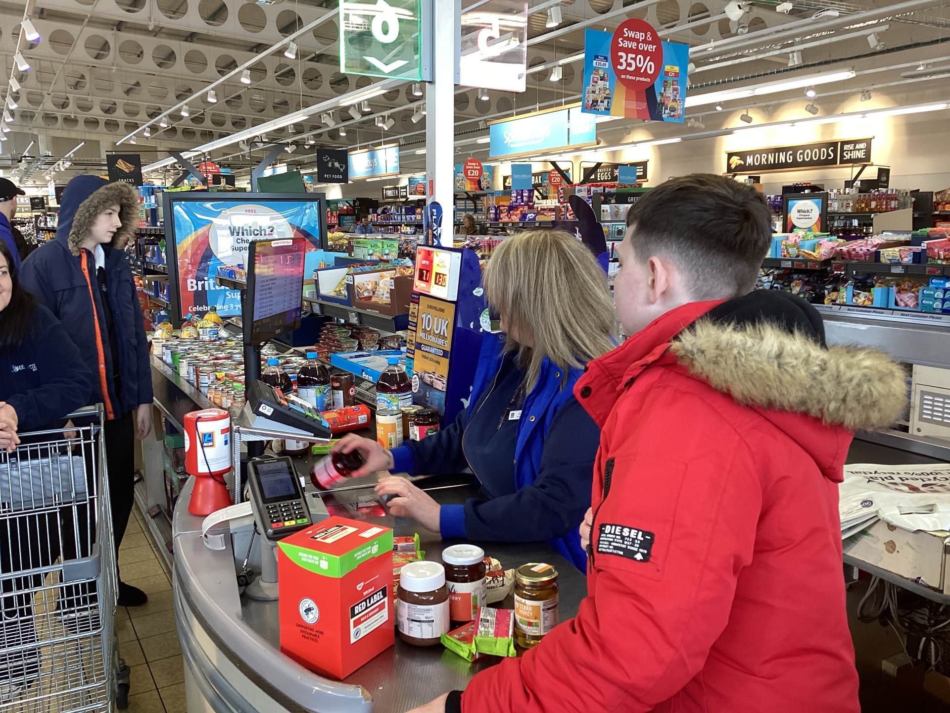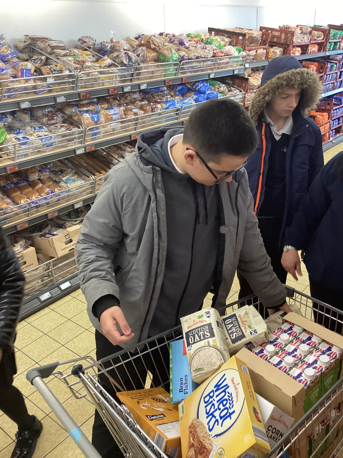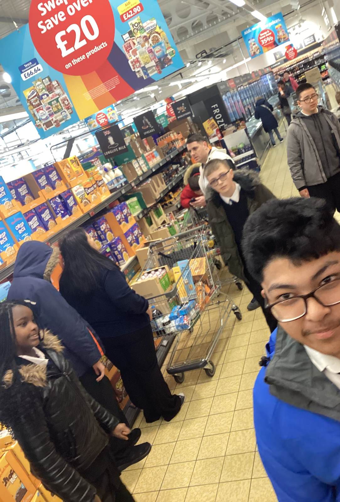 Yesterday, as a result of the amazing fundraising work 9A did before the Easter holidays, we visited 2 supermarkets – Aldi and Costco – buying food items to donate to Tameside East Foodbank.
