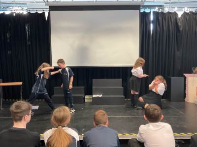 We then hit the stage and performed freeze frames and scenes all about what ‘Respect’ means to us, how we can show respect in and out of school and what we can do to prevent Bullying all together.