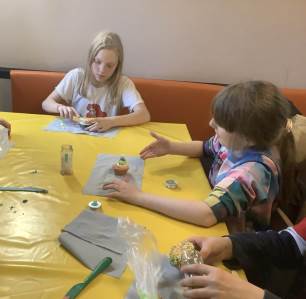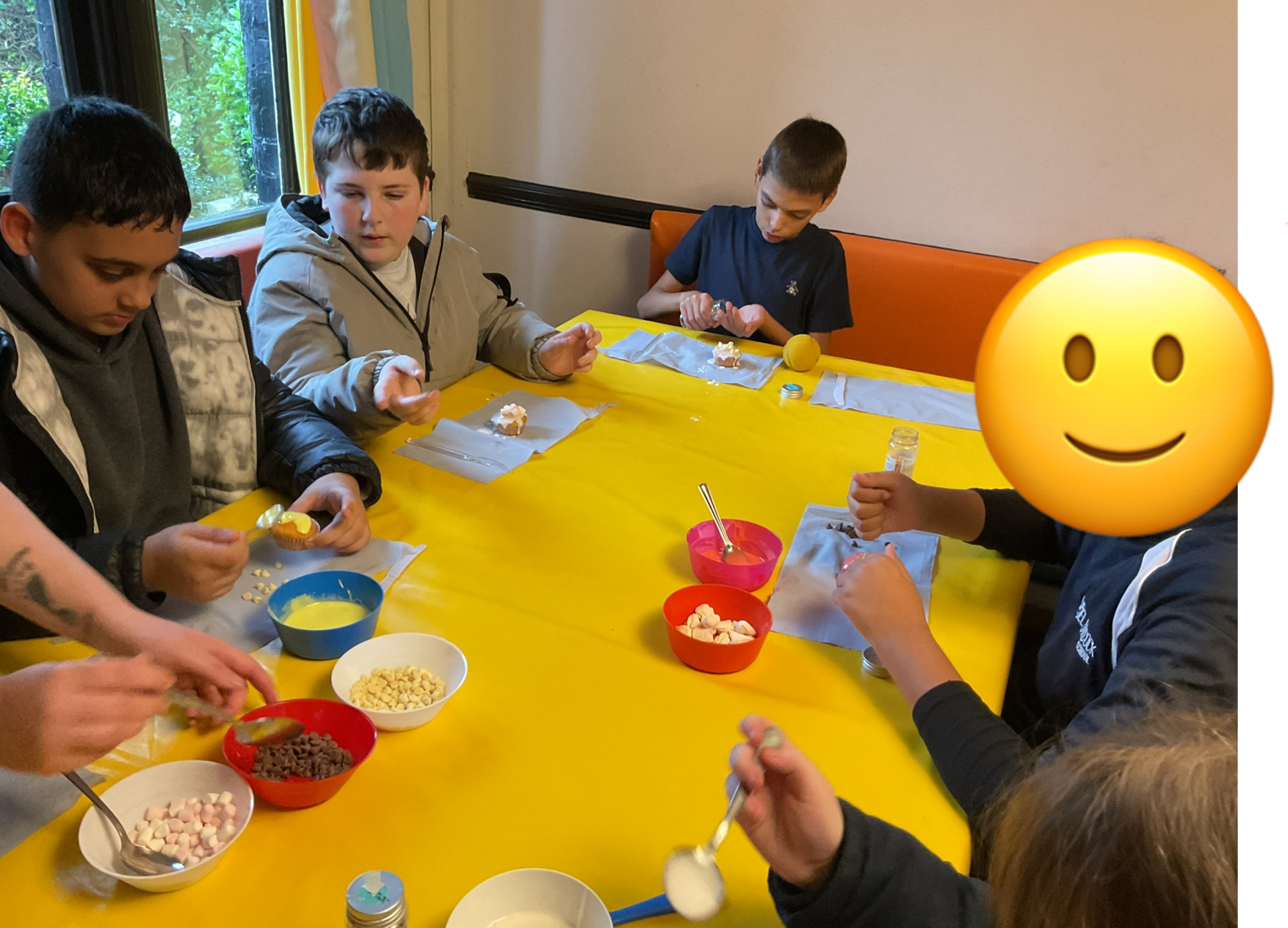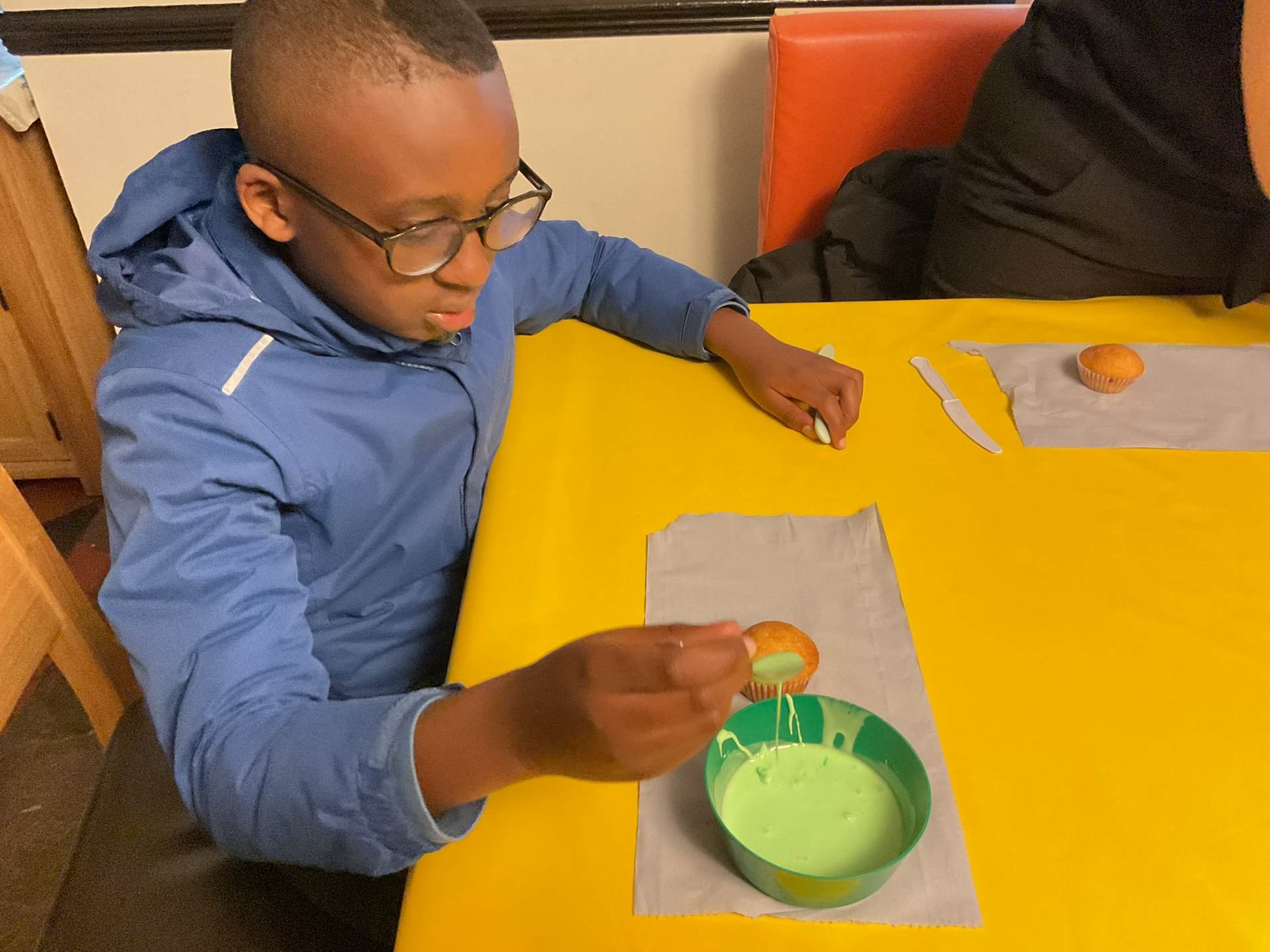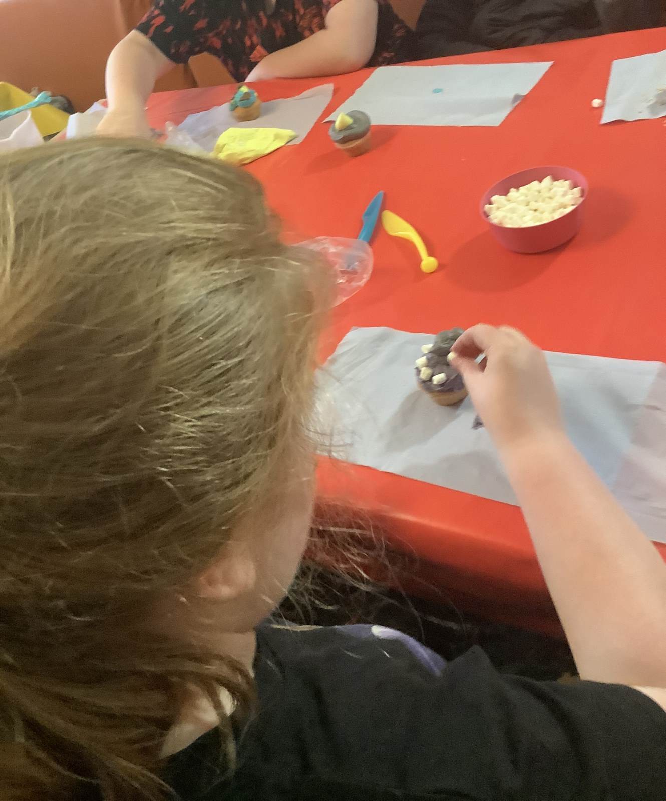 We then had our lunch together before setting off for more activities in the hangout room and art room where we joined in with a craft session and decorating a homemade bun with lots of icing and sprinkles!