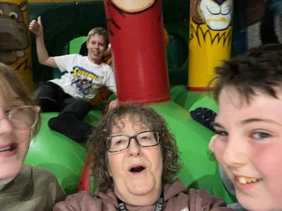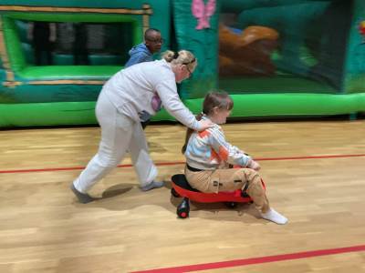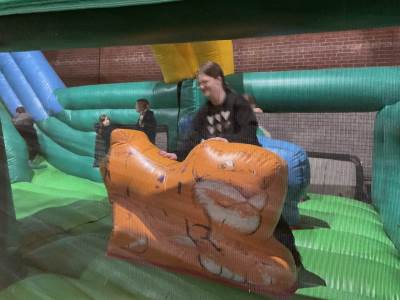 Once the animals had been petted and fed we had a quick snack before burning off our energy in the sports hall where there was a HUGE inflatable slide!