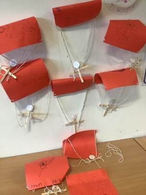 Engagement pathway made some parachutes and soldiers out of lollypop sticks after watching the video of soldiers jumping out of the planes.