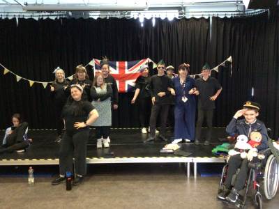 In the performing Arts Pathway, all pupils and staff dressed up in 40s headgear from their costume wardrobe and the pupils watched BBC footage with voices of real soldiers who survived D Day. They also listened to the most popular music of the 1940s and heard some extracts from the D Day memoirs of Mrs Loughran’s Uncle Frank, who was a paratrooper in the Airborne unit, when he was just 19.