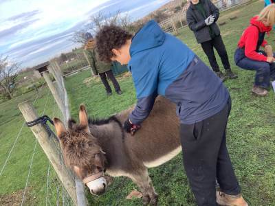 We started off with a demonstration of how to trim a goats hoof. We then went to groom and walk the donkeys and finished off with toasting marshmallows which was a lovely treat.