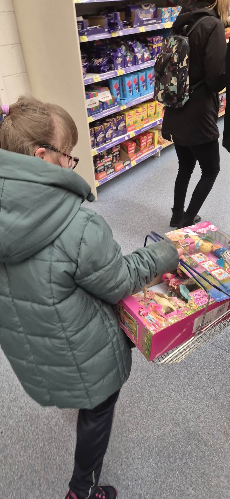 In B&M, each pupil had a personal budget of £20 and they were tasked with picking 1 toy for a girl and 1 toy for a boy. Everyone had great fun walking round B&M, looking at the different toys and picking what they liked the most. Everyone then waited patiently in the queue to pay for the toys they chose.