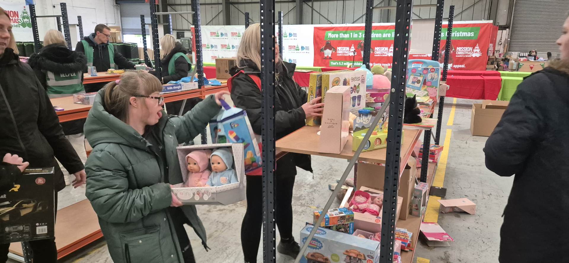 Next up was the trip to the Mission Christmas warehouse in Trafford Park. We arrived and took in all of the toys we bought today. We had a look around the warehouse and the volunteers there helped us to place some of our toys on the correct shelves depending on if they were for a boy or girl and their age range.