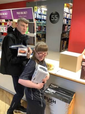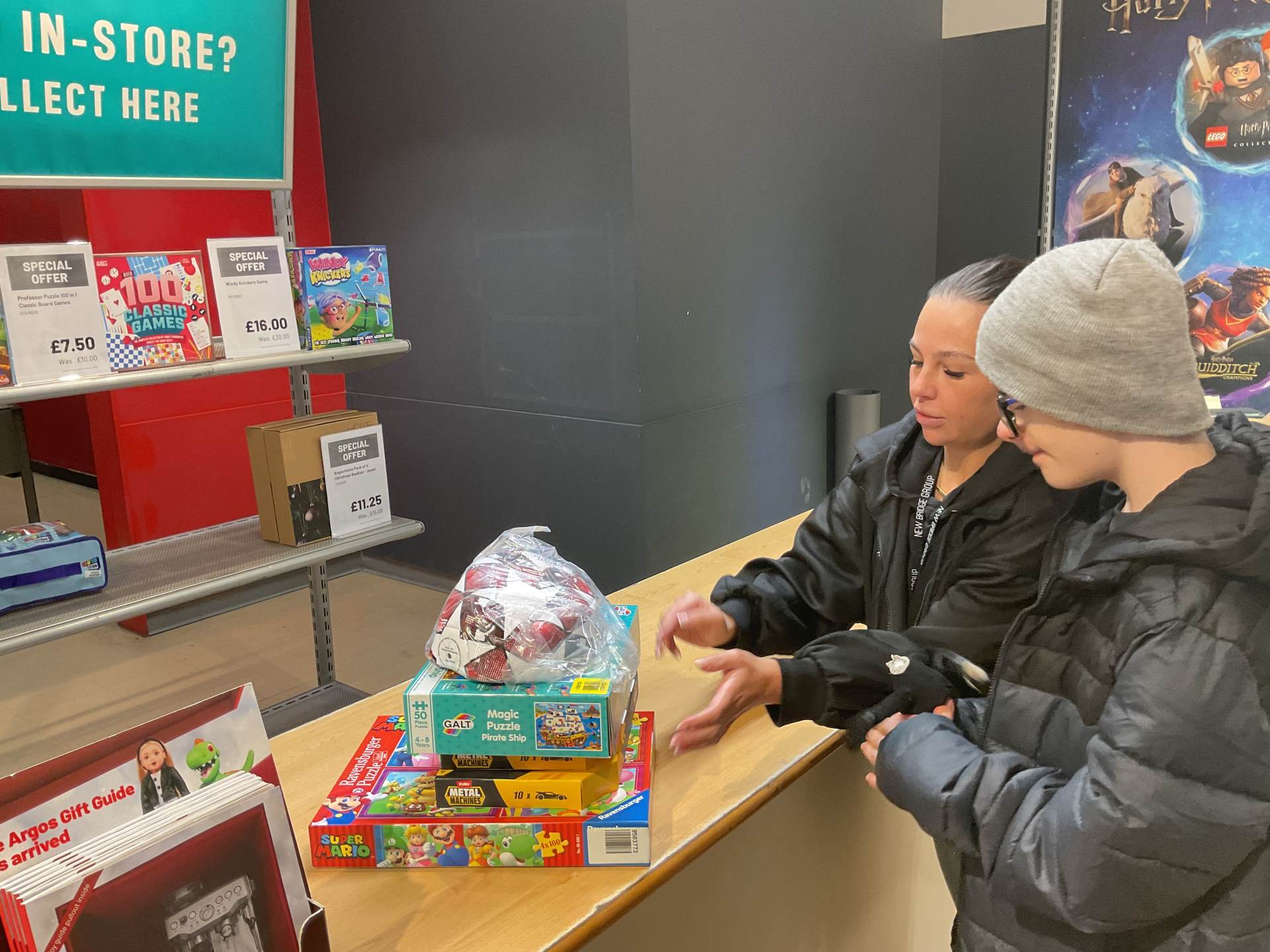 Some pupils created a shopping list of toys from Argos that everyone used the machines in Argos to check their availability in the store before paying for these items. In Argos, we spent £260.