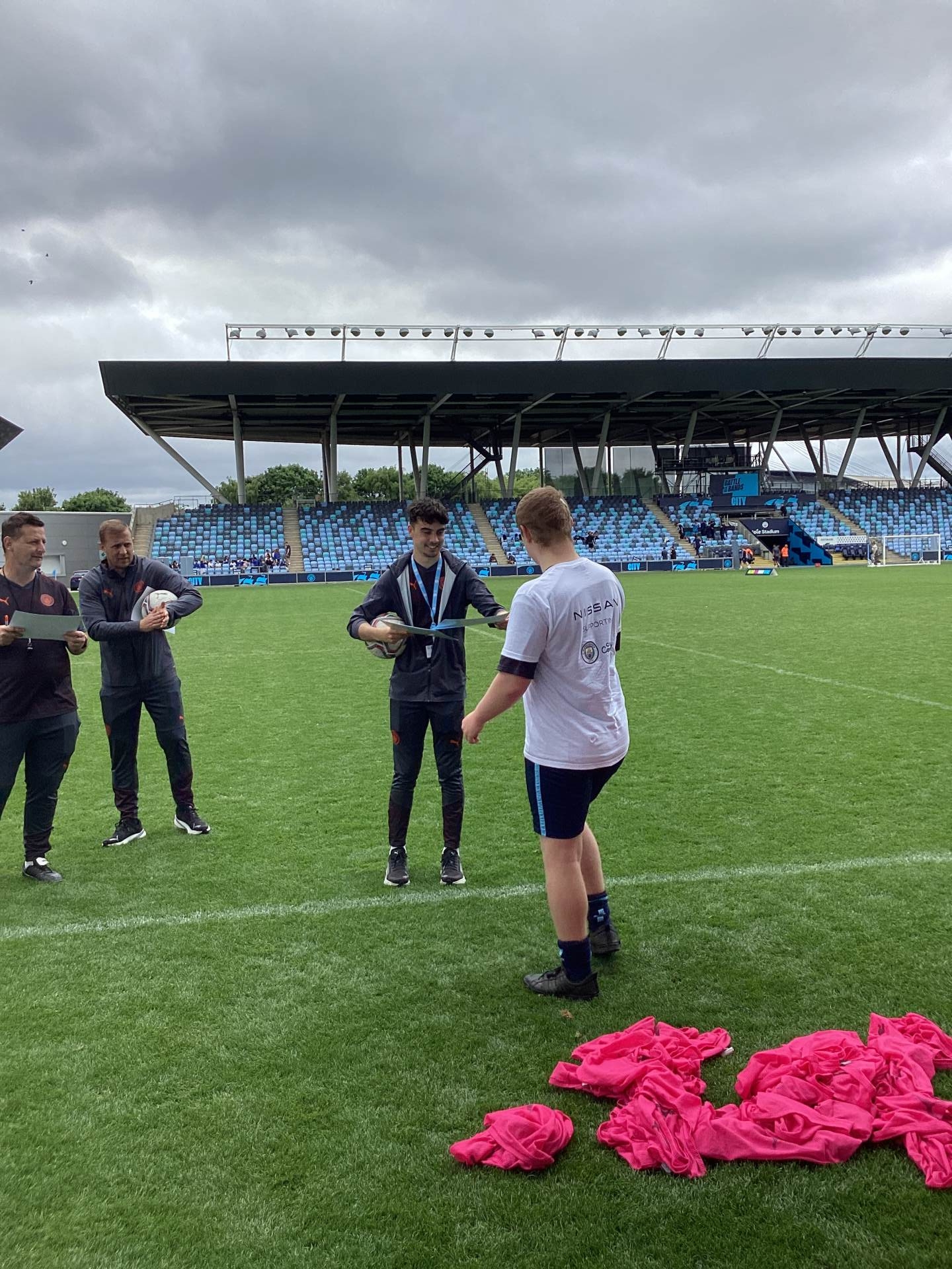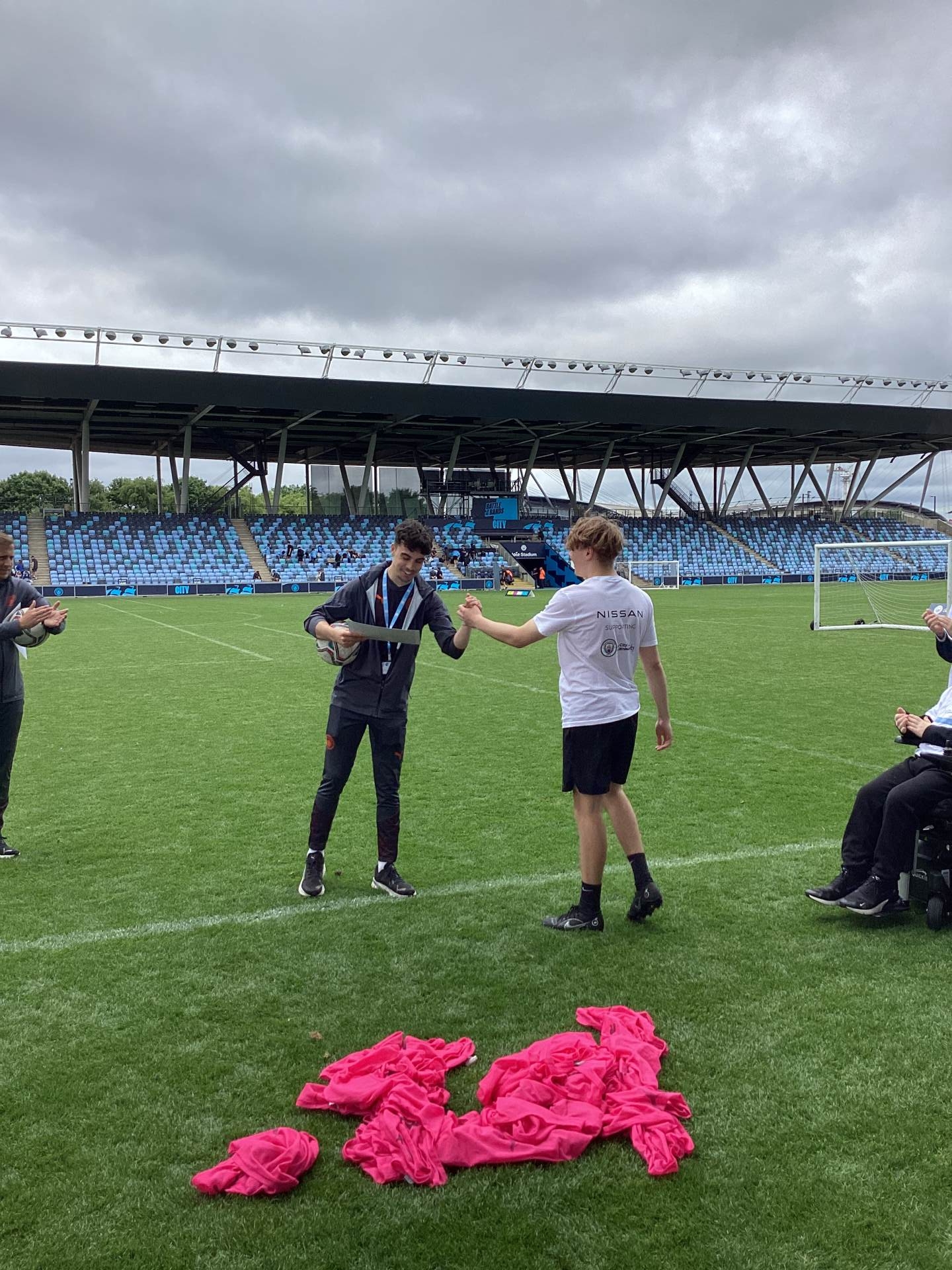Paul Kelly, our amazing school link who runs the incredible disability provision at MCFC invited our pupils, due to their amazing behaviour and effort at every event that we attend. The pupils have had the amazing opportunity to play at the Manchester City women’s stadium, on the main grass pitch. They played 3 games where they shared the pitch with a women’s walking football group. Our goals today came from Stephen and Michael. Isabella and Jonathon were both interviewed by the Manchester City media where they told them how much they enjoyed the experience of the day and also the amazing opportunities given by the City in the Community Foundation.