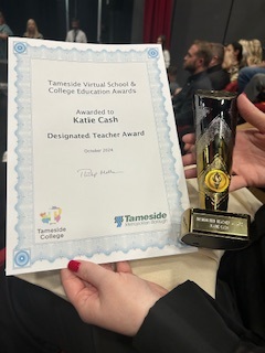 Our very own Kate Cash was also presented with an award for Designated Teacher and the comments below were put forward by the Education Welfare Officer for Virtual School: