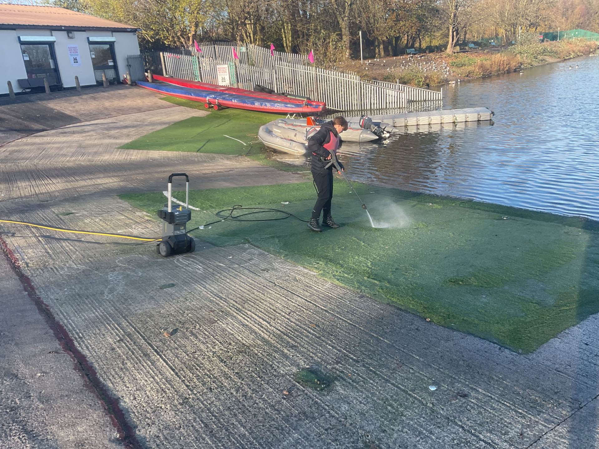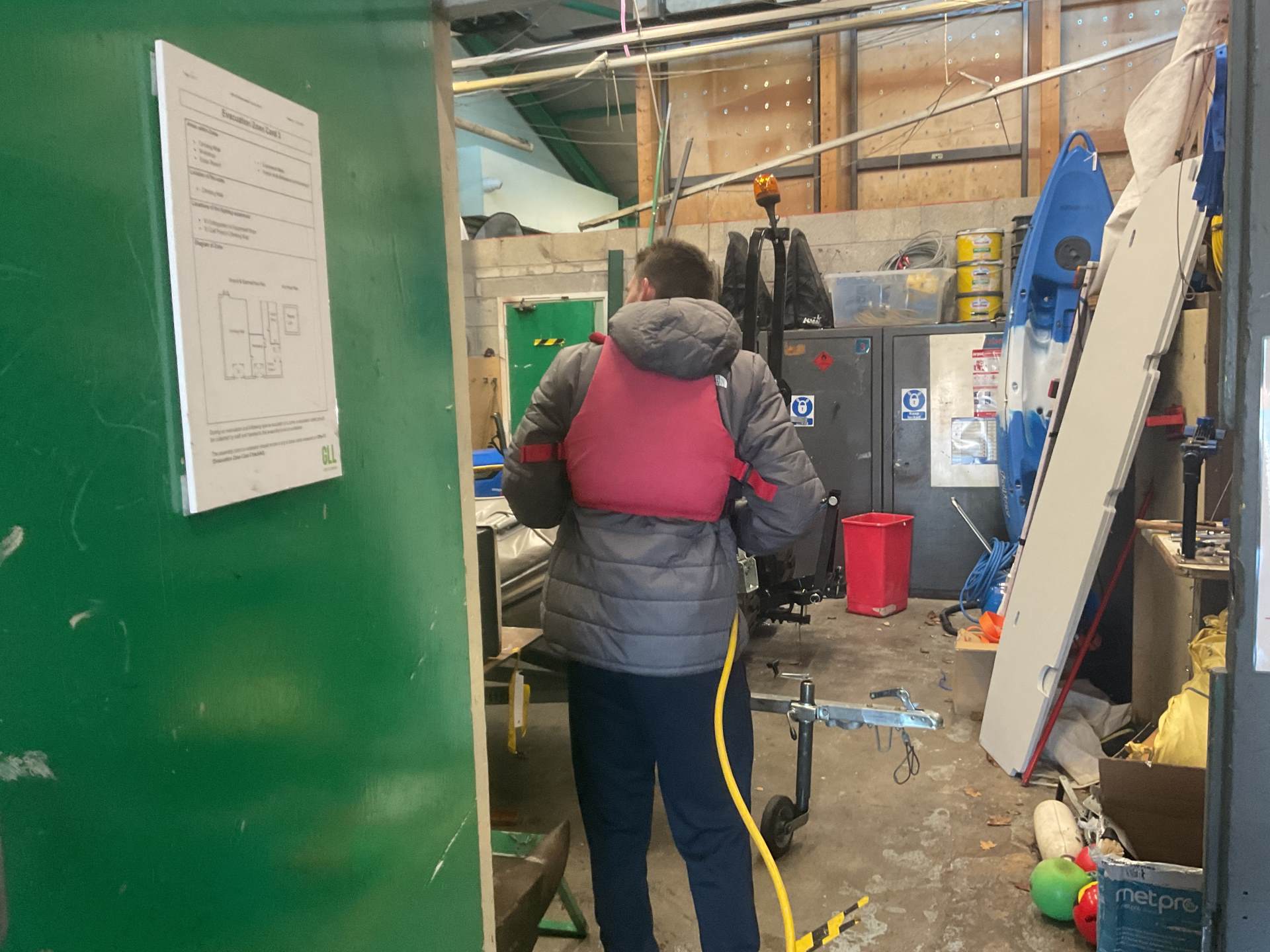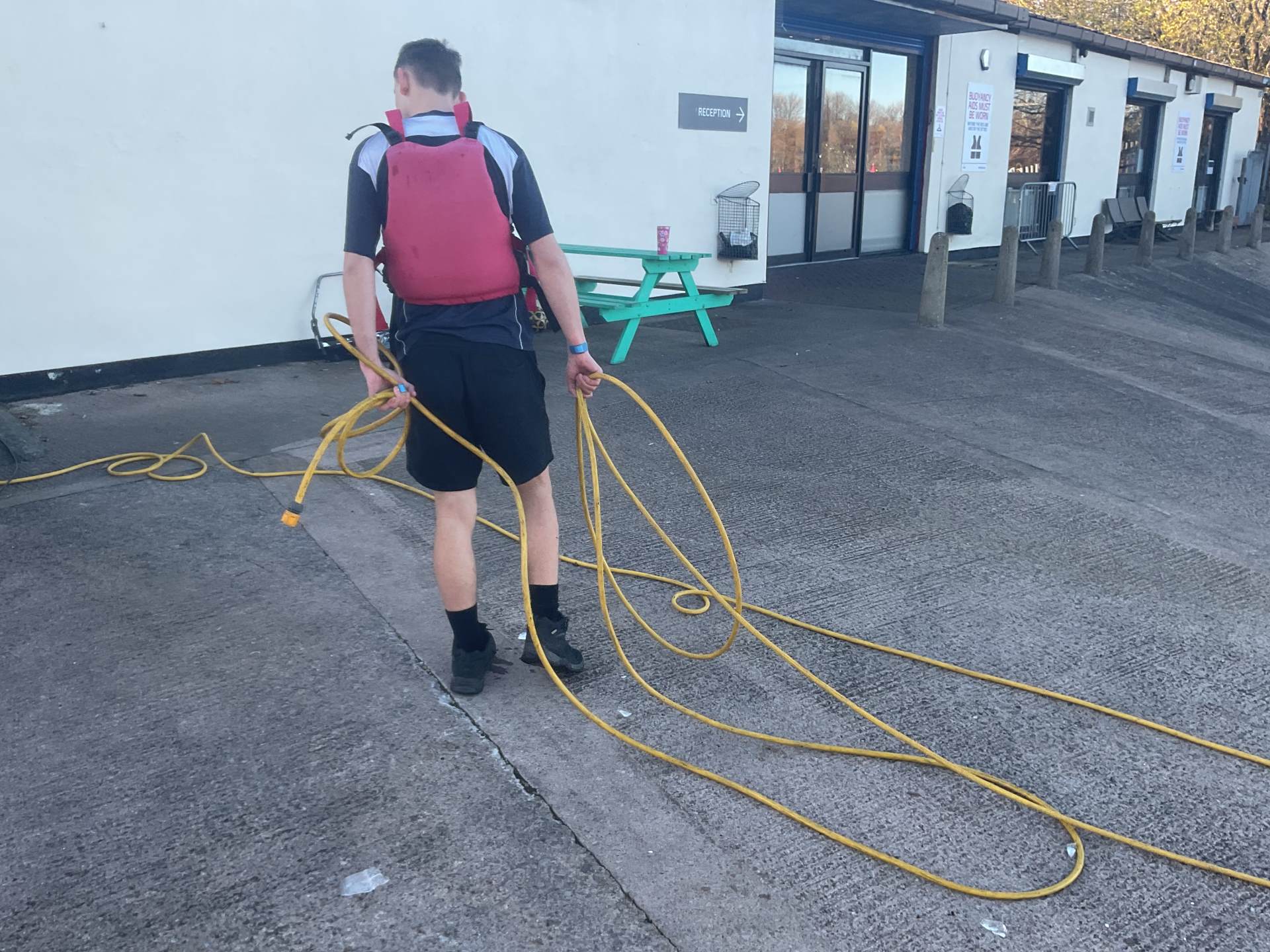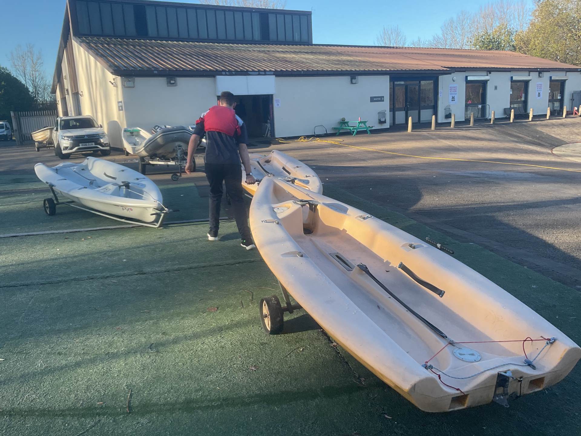 This did not dampen the new students starting their Work Experience at Debdale Outdoor sports centre. Miss Scott dressed to impress with her very best walking base layer, jumper, Staff Fleece, neck snood, hat, gloves and massive fleece long coat, Lyndon walked out onto the jetty wearing… shorts and T-shirt brr.