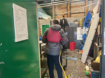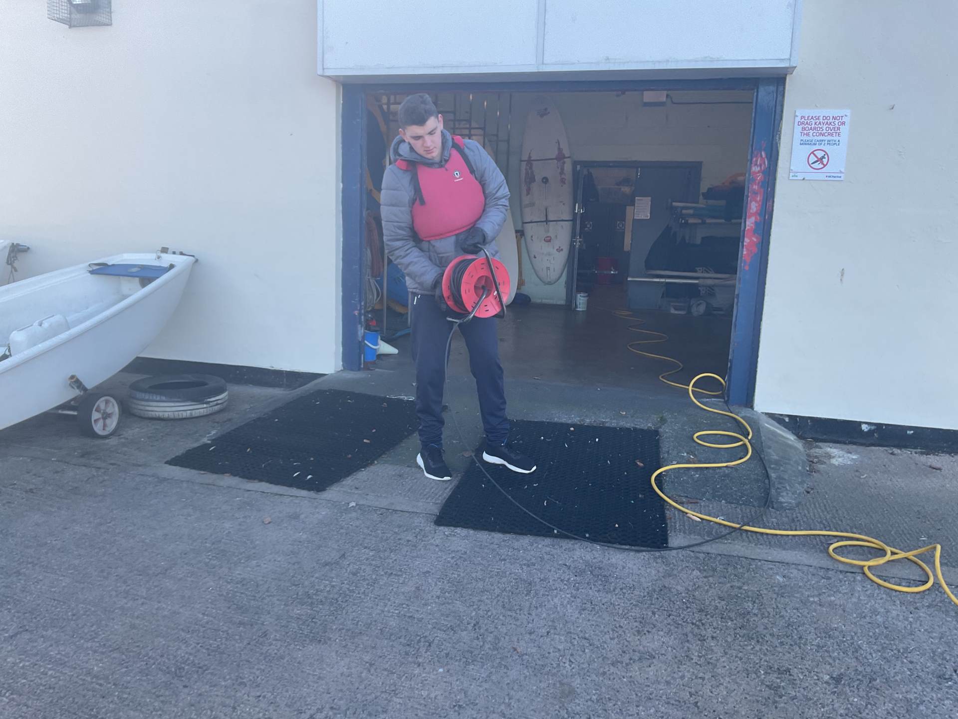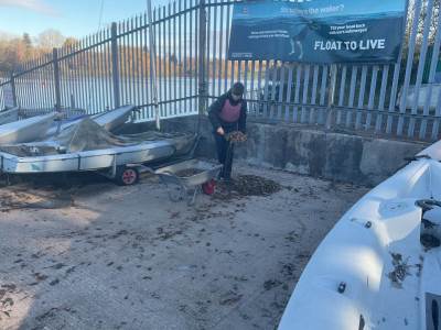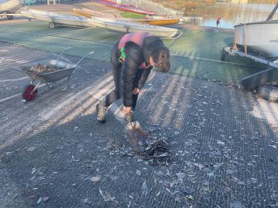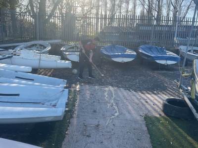Jet washing and leaf clearing for these three heroes but please don’t think Miss Scott is a task master, downtime waiting for the wheel barrow to come back from the compost run was spent smashing ice (safely ) oh so gratifyingly.