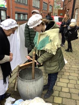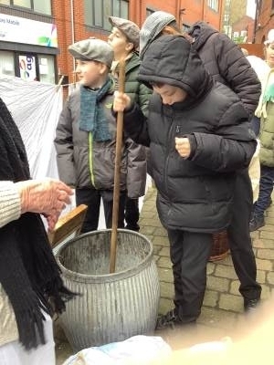 1. Pupils learned about the laborious process of washing clothes during Victorian times. They had the chance to observe and participate in a live demonstration of how clothing was washed, scrubbed, and wrung out.
